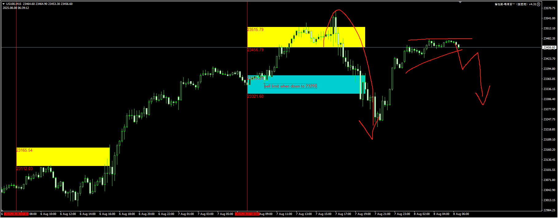 Nasdaq: Yesterday, the sell operation we provided after the yellow sweep liquidity was very successful, achieving a profit-loss ratio of about 3 times. However, the performance in the blue area failed once. Today, we will continue to wait for a clear bearish signal to appear before catching the pullback. If the price continues to hit new highs without a pullback, it is recommended to wait and see. For detailed positions, please consult the plugin.
