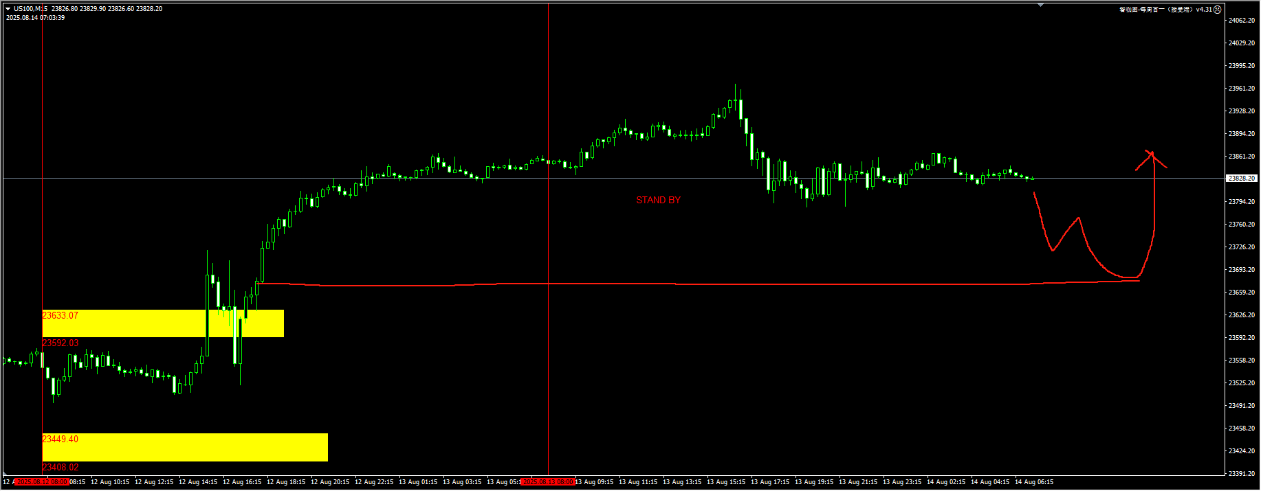 Nasdaq: We clearly pointed out in yesterday’s article that it would be best to wait for the price to retrace to around 23,700 before making a judgment. The plugin also provided a “STAND BY” reminder to wait and see. For today, we suggest continuing to wait for the price to retrace for confirmation. For detailed positions, please consult the plugin.
