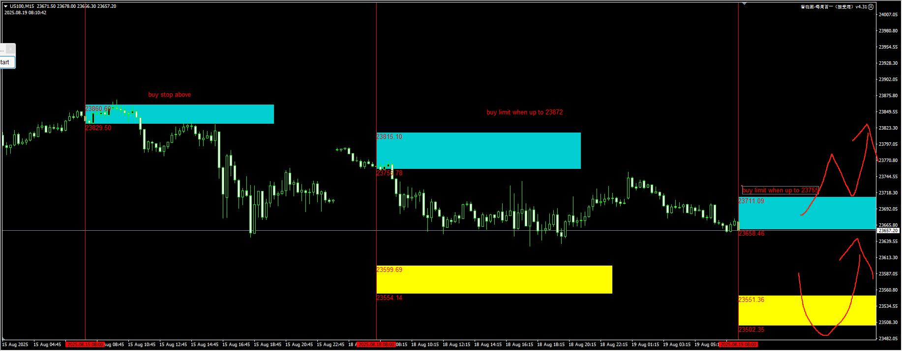 The Nasdaq: Market sentiment in European and American stock markets remains cautiously optimistic as Trump continues to try to push for negotiations between Russia and Ukraine. Early in the trading session, prices were held back near 23,700 and then fell. If the level is recaptured during the day, it can be seen as a signal of a bullish attempt to counterattack, and a short-term long position can be attempted. Additionally, bulls should also defend the liquidity levels at 23,500/23,550. For detailed positions, please consult the plugin.