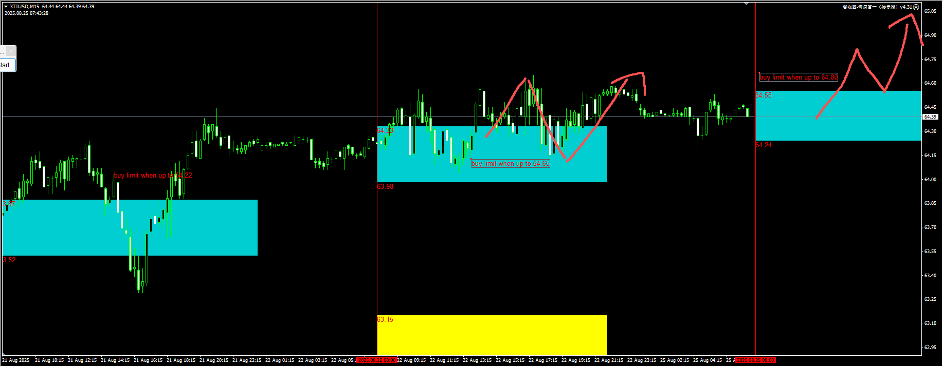 Gold: Powell’s remarks at the central bank’s annual meeting were relatively moderate. Gold may continue its upward technical adjustment in the short term. We remain optimistic about the price today and look forward to the momentum signal appearing in the blue area; or wait for the liquidity in the yellow area to be swept low and then continue to try to buy low. For detailed positions, please consult the plugin.