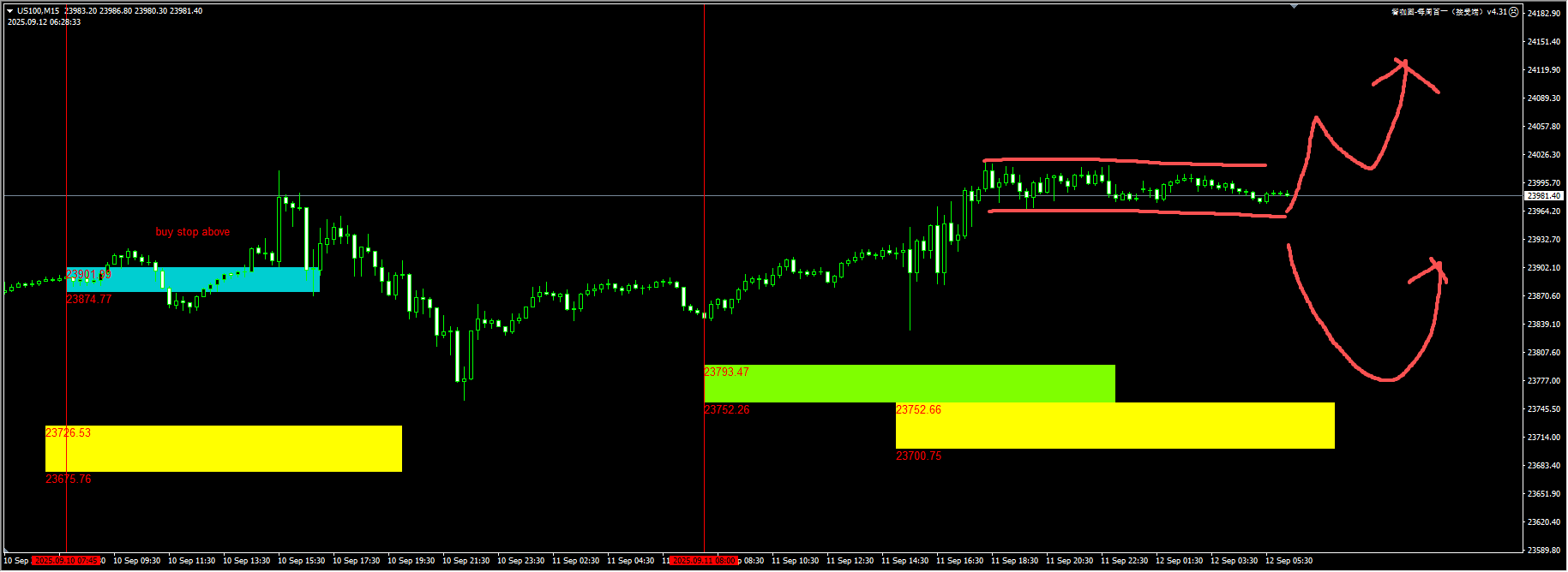 Nasdaq: If the short-term price can break through its own platform, we will continue to maintain a short-term bullish position. Pay attention to the profit-loss ratio and advance protection at a 1:1 ratio. Additionally, after sweeping the liquidity near 23800, capture the rebound signal. For detailed positions, please consult the plugin.