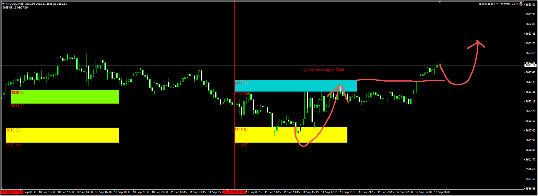 Gold: As we mentioned in the alert yesterday, after the liquidity sweep in the yellow area, we should look for a rebound signal. Then, for the buy entry after the pullback from the blue area break, we didn’t enter yesterday. Today, we still maintain the plan to buy after the pullback near 3640. For the exact position, please consult the plugin.