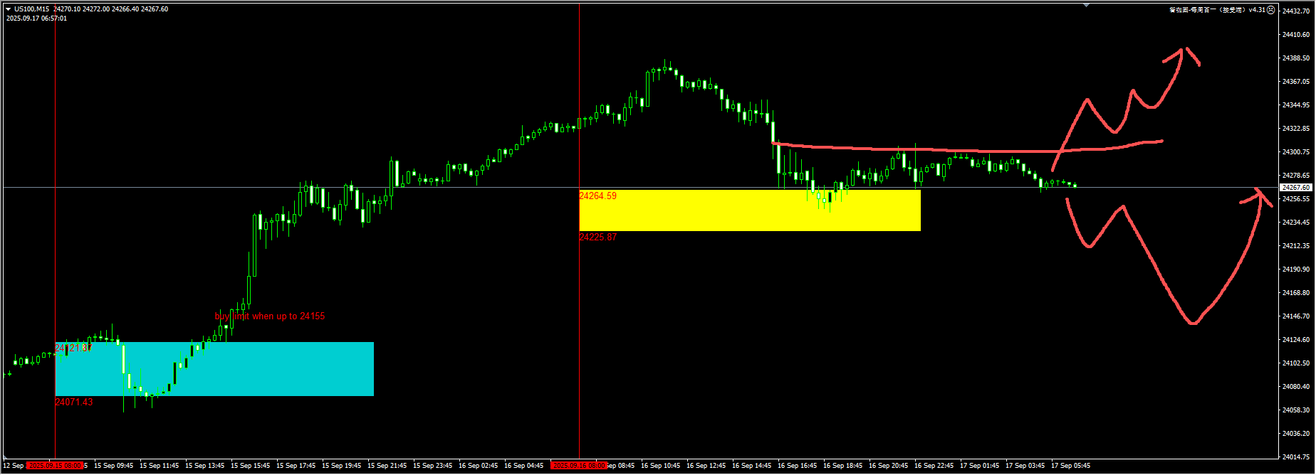 Nasdaq: Prices are about to receive guidance from the Federal Reserve meeting, and it is expected that the range of volatility may expand. We maintain the strategy of buying a rebound signal after a low sweep around 24100/24000. At the same time, pay attention to whether the price can regain its stability at 24,300/24,350 after the interest rate cut, and then continue to capture the signal of a momentum breakthrough. For detailed locations, please consult the plugin.