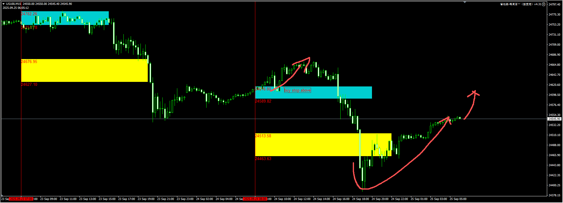 Nasdaq: Yesterday, our plugin clearly reminded that a break above the blue line would require a buy stop operation; in addition, after a pullback to the yellow line, a buy stop operation should be carried out when the price rebounds back to 24,513. Currently, both of these two operations have achieved good results. For today’s trading, we suggest that if the price rebounds further, the long positions bought at the overnight yellow line should be further protected. The ideal entry point in the future is still to look for an opportunity to buy stop after the market sweeps through the 24,300 – 24,400 range. For detailed positions, please consult the plugin.
