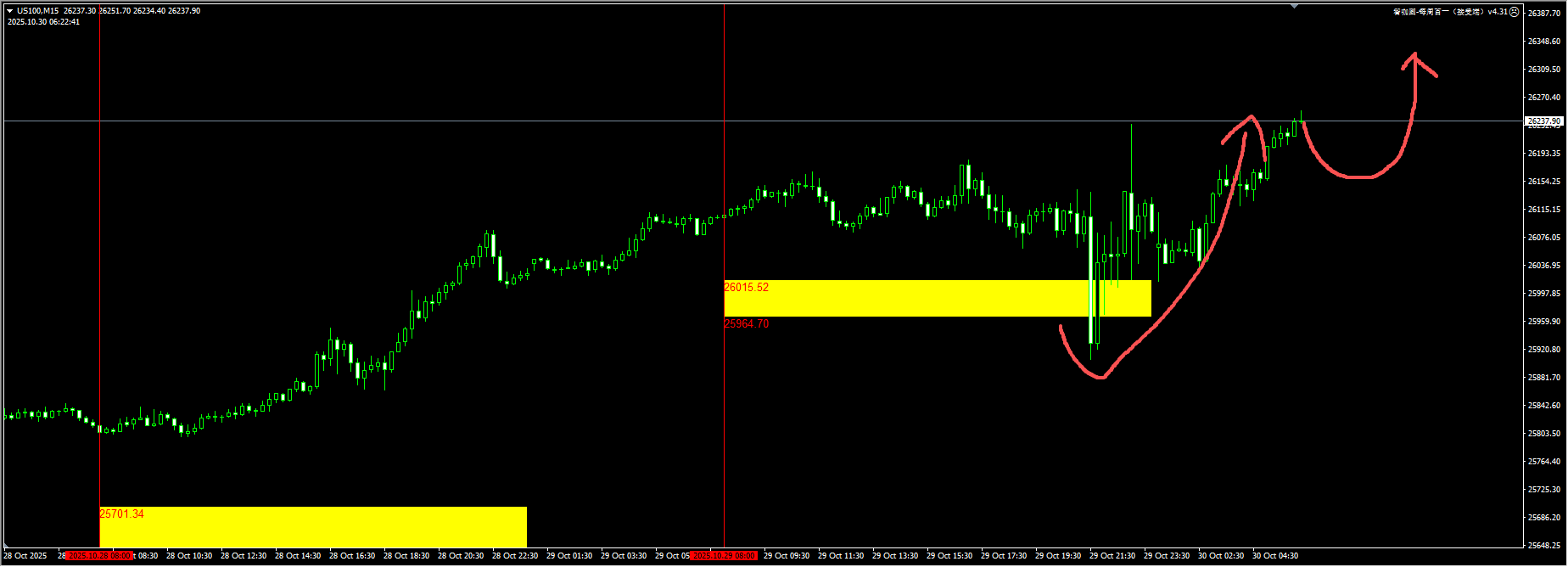 The Nasdaq continued to hit new highs as tensions eased around TACO trading and potential progress in Sino-US trade negotiations. The rebound after the low sweep in the yellow zone alerted by the plugin yesterday was very classic, achieving a profit-to-loss ratio of 3 to 4. It is recommended to reduce positions and set protective stops today, while keeping an eye on the stabilization signal when it retraces to the nearby demand zone. For detailed positions, please consult the plugin.