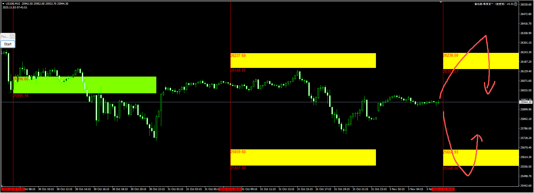 The Nasdaq: The easing of TACO trading and the possible progress in Sino-US trade negotiations have continued to push the Nasdaq to new highs. The two yellow zones we provided in the plugin last Friday for up and down sweeps have not been triggered yet. Today, we will focus on the pullback opportunities after the price sweeps up and down with high liquidity. For detailed positions, please consult the plugin.