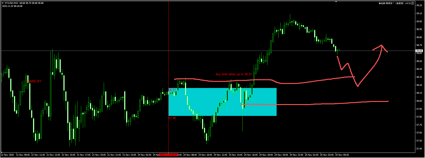 Crude oil: After the price converged yesterday, it broke out upward and reached above 59. If the price drops back to test the breakout point around 58.30 today, we can try a long position. For detailed positions, please consult the plugin.