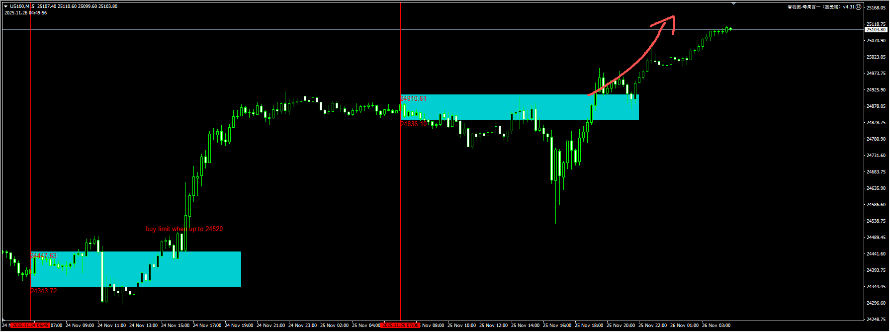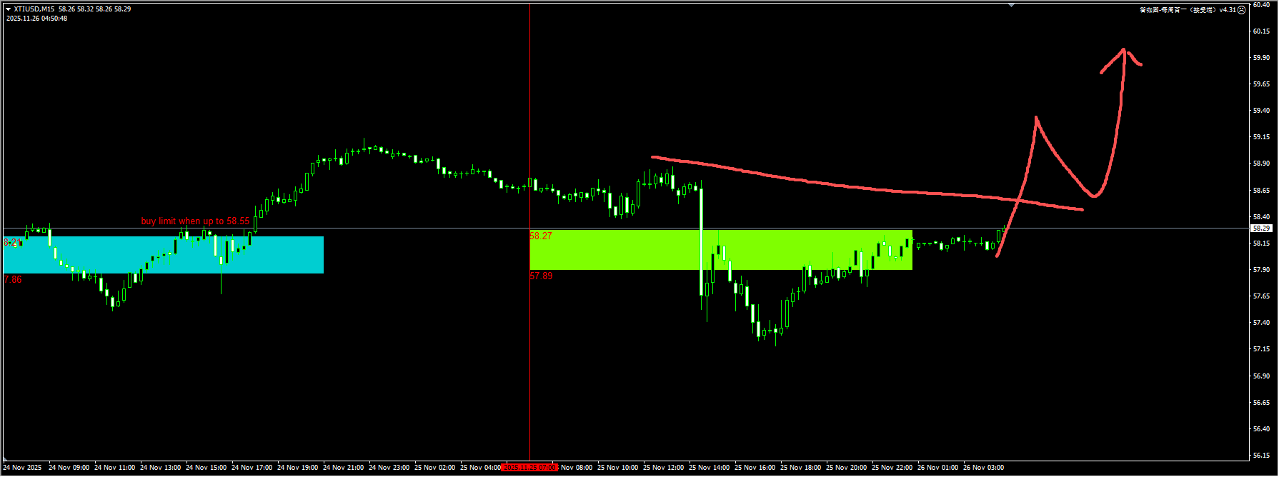 Crude oil: Yesterday, the price broke through the green demand zone we were expecting, but then rebounded and recaptured that area. For today, we should be more cautious about participating in the long position. It is recommended to wait until the price recovers above 59 before considering a buy signal on a pullback. For detailed positions, please consult the plugin.
