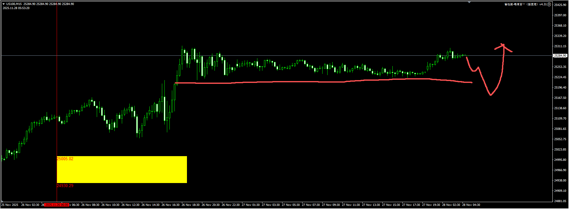 The Nasdaq: During the holiday period, liquidity is low, and there are no large orders willing to push up prices. For the day, continue to focus on clearing liquidity around 25,200 and capturing rebound signals. For detailed positions, please consult the plugin.