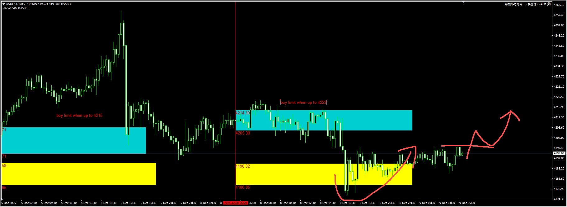 Gold: The color combination we provided for our plugin yesterday was yellow and blue. Currently, after sweeping the liquidity around 4180, the price has started to rebound and stabilize. The intraday support and resistance level is around 4200. If it holds above this level, short-term buying can be considered. For detailed positions, please consult the plugin.