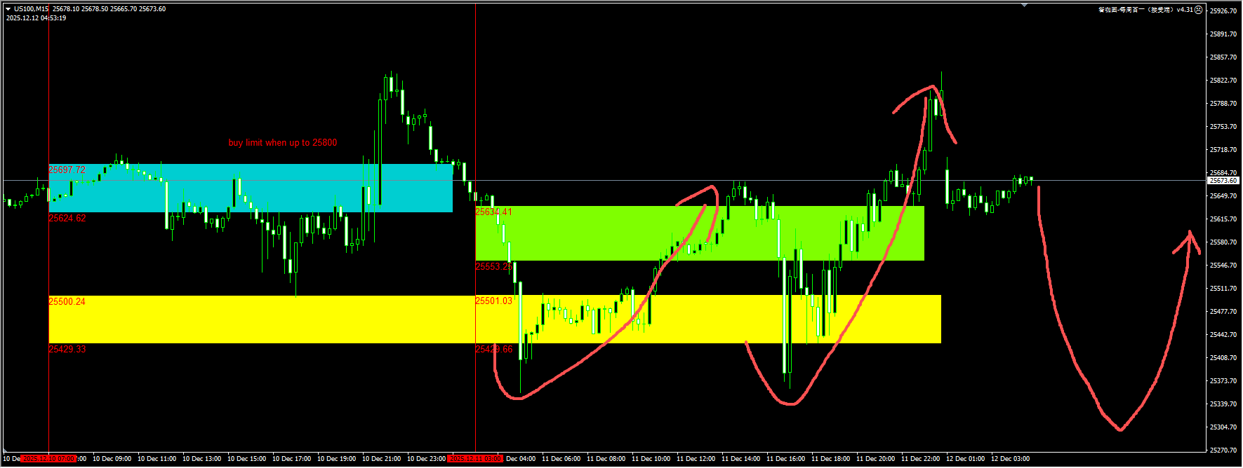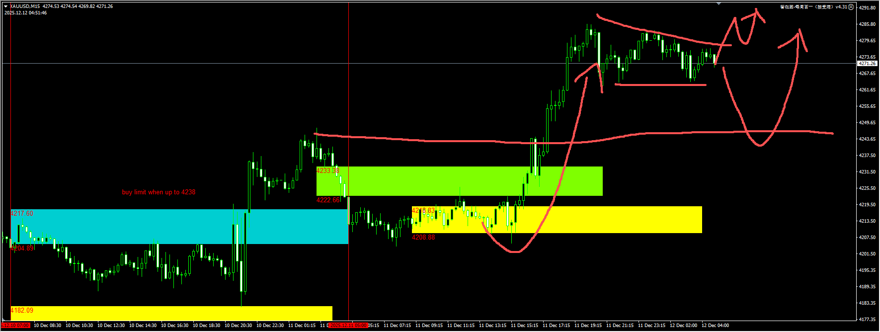 Gold: Yesterday, the green buy limit alert from our plugin failed, but the rebound after the yellow liquidity sweep was perfect. After the price broke below 4208, it quickly stabilized and rose, reaching above 4280. Today, we should pay attention to the demand zone support near 4240. If it can be confirmed by a pullback, it will be a reasonable opportunity to buy again. For detailed positions, please consult the plugin.