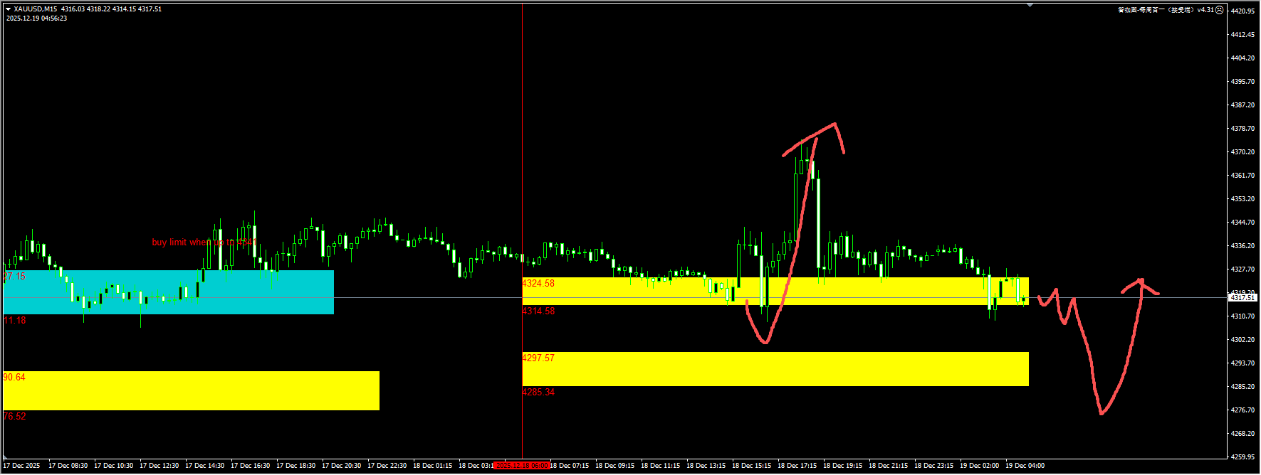 Gold: Yesterday, our plugin gave a reminder of the yellow liquidity sweep around 4314, which was perfect. After the low sweep, the price directly touched above 4370. Currently, the price has dropped back to around 4310. Due to the Friday factor and the upcoming Christmas next week, the bulls may temporarily be unable to effectively hold above 4350. For today, continue to capture the small rebound waves after the low liquidity sweep. For detailed positions, please consult the plugin.