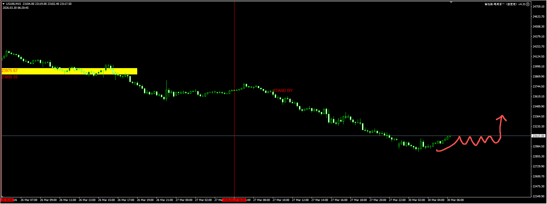 The Nasdaq: With no easing of geopolitical tensions and oil prices returning above $100, the Nasdaq has further declined below 23,000. The price has moderately rebounded intraday to around the 23,100 level, but there are no signs of improvement in the trend. It is recommended to continue observing and wait for further signals of price stabilization. For detailed positions, please consult the plugin.