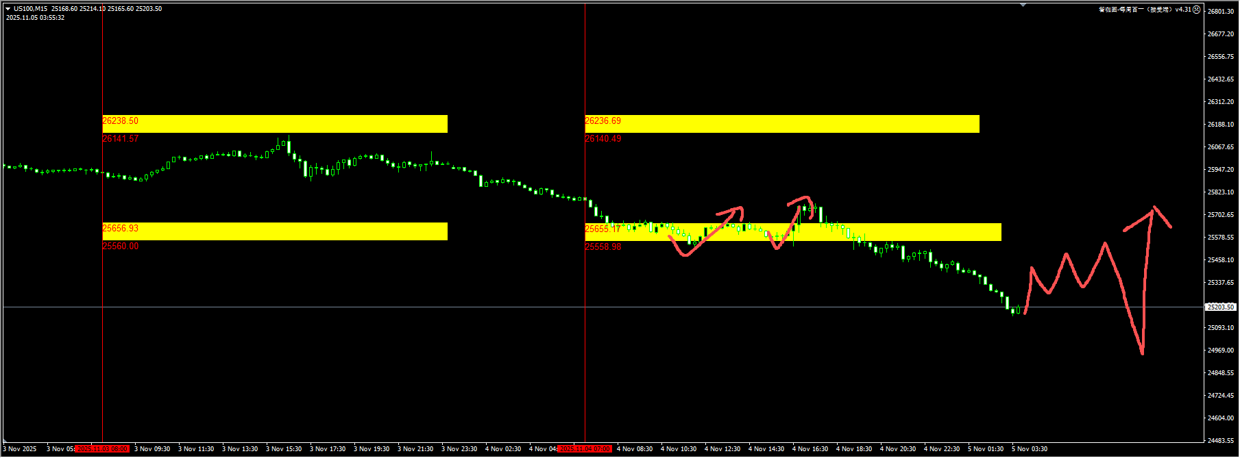 纳指:美联储削减12月降息预期的影响,最终还是对纳指产生了下跌的压力。不过我们暂时也不认为价格会连续大幅下跌,优先关注25200/25400区域的支撑表现。日内可能会有反弹迹象,但反弹之后可能会持续整理一段时间,同时不排除多次扫荡流动性的情况。因此我们建议暂时观望为宜。详细位置请咨询插件。
