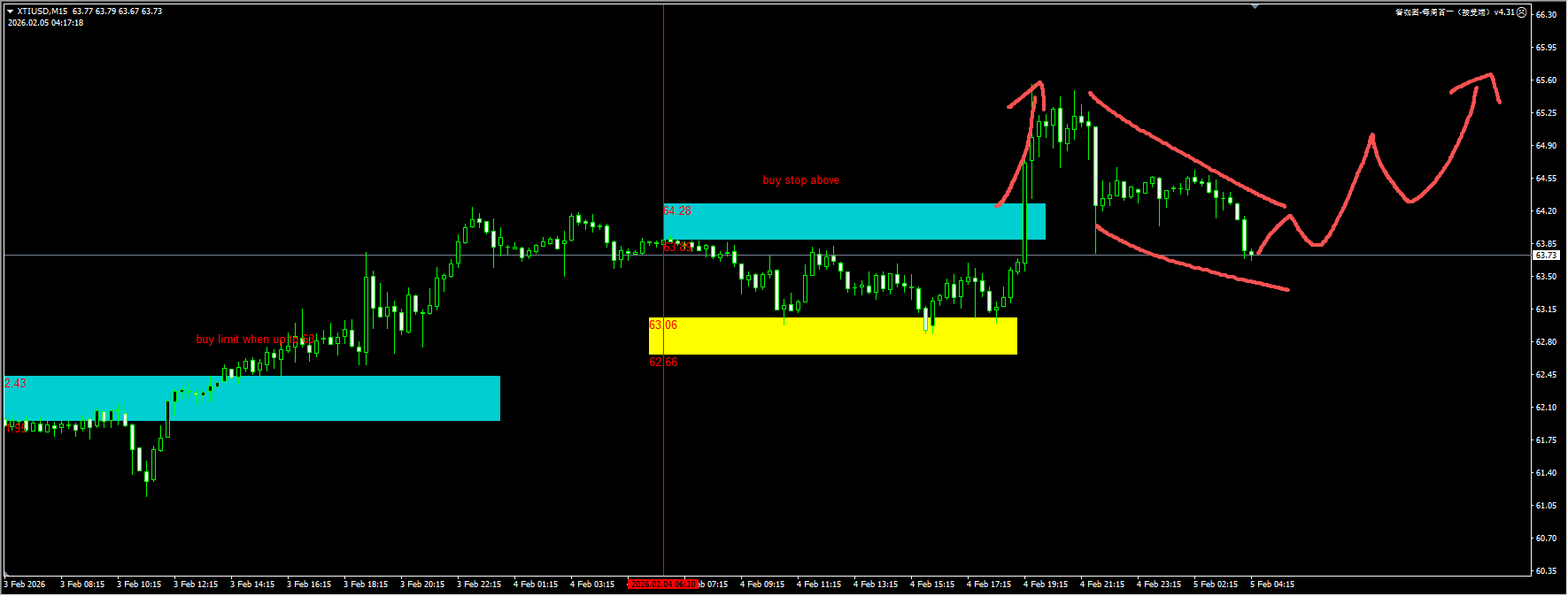 原油:昨天我们插件蓝色区域buy stop的建议,能够收获一波超过2倍的盈亏比效果。目前价格二次回踩隔夜的需求区,我们建议等待突破通道后,再做回踩确认的买入信号。详细位置请咨询插件。