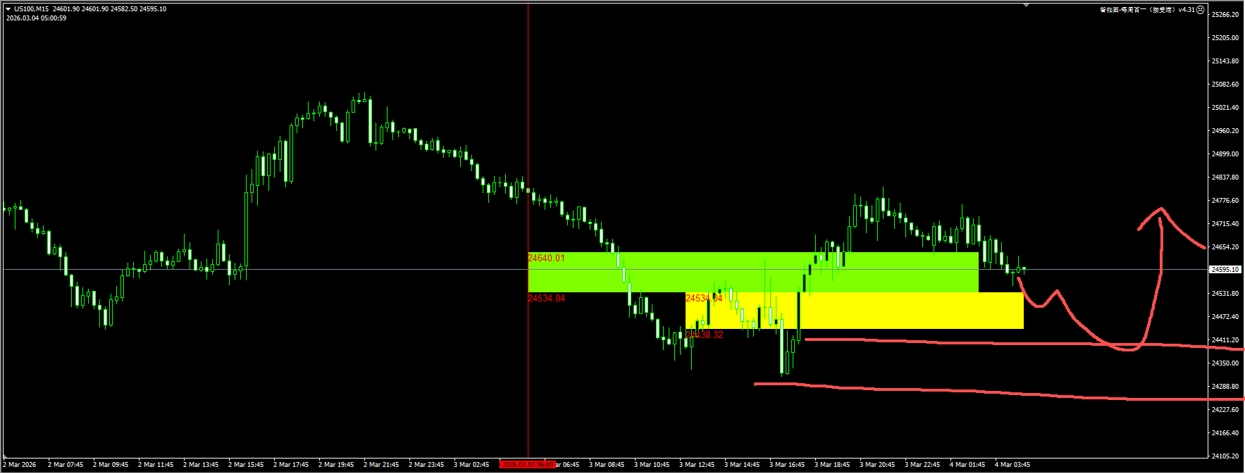纳指:隔夜价格扫荡了24300附近的流动性之后反弹,日内关键需求区在24400附近,回踩确认可以尝试多头反弹的波段操作。详细位置请咨询插件。