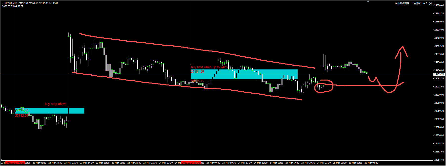 纳指:价格小幅突破了昨天以来的整理通道,日内我们密切关注回踩24000附近能否止跌企稳,二次发起反弹。如果有明确信号,那么价格可能再度看向24550水平。详细位置请咨询插件。