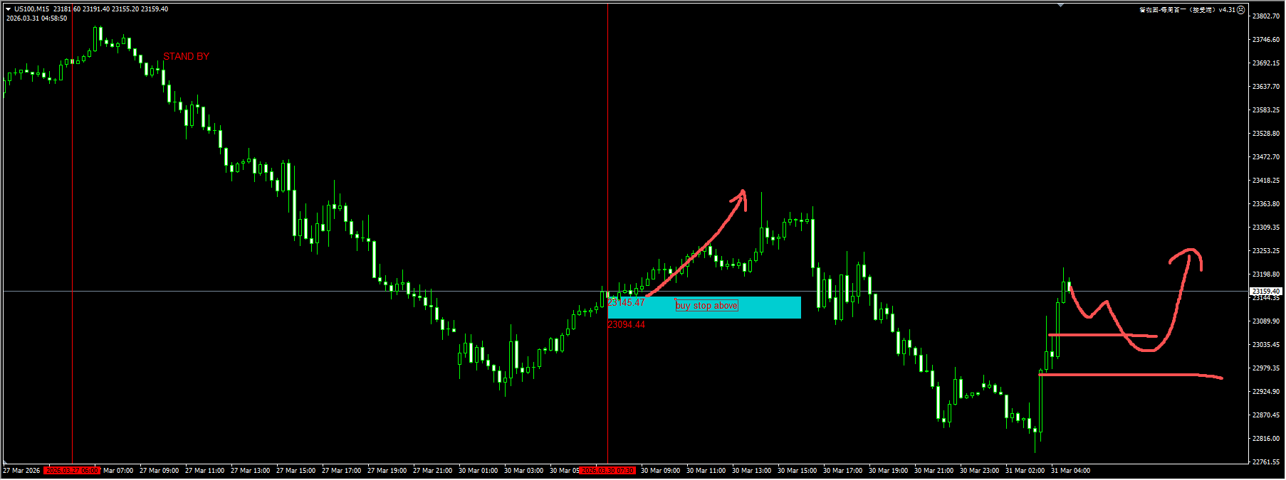 纳指:昨天我们插件中给出了蓝色区域突破的buy stop的操作建议,效果也十分显著,能够实现3倍以上的盈亏比。日内关注价格针对23050支撑回踩的效果,企稳可以尝试1次多头操作。详细位置请咨询插件。