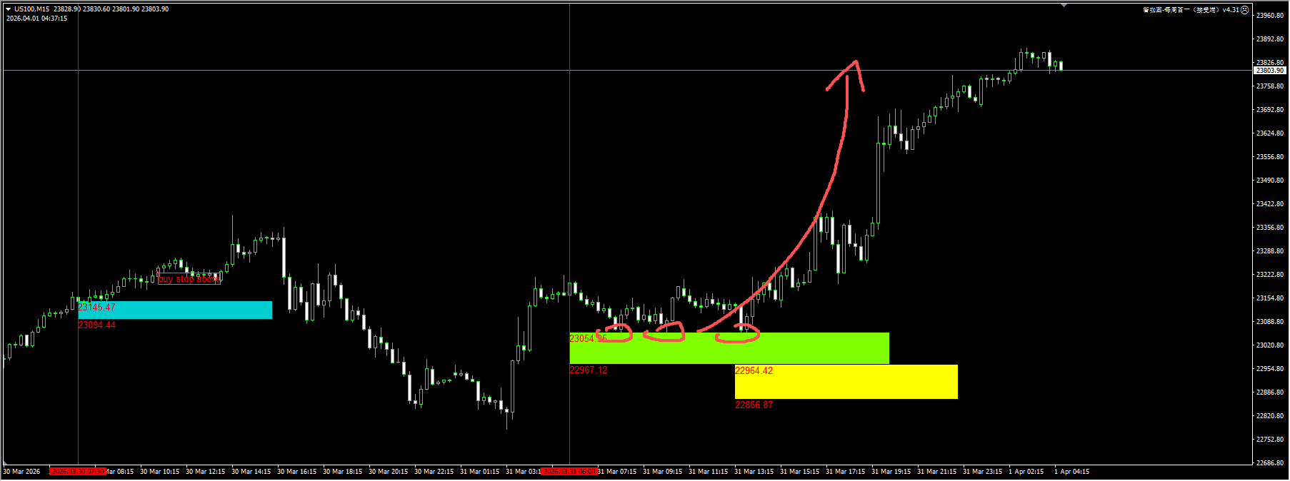 纳指:昨天我们插件提醒的绿色区域buy limit的操作,实现了大约9倍的盈亏比。日内我们关注价格是否需要回扫23500/23550的流动性,如果有回扫,继续关注后续的反弹信号。详细位置请咨询插件。