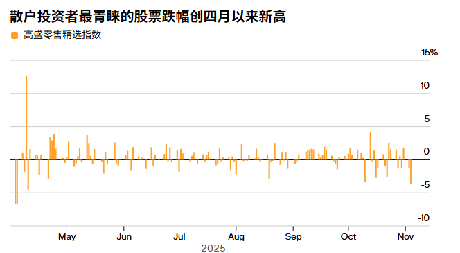 高盛集团编制的零售热门股票指数(Retail Favorites Index) ——该指数包含大量非专业交易员持有的股票——受到Palantir Technologies Inc.令人失望的盈利报告以及一份文件显示一位著名的对冲基金经理上个季度对该股票和芯片制造商英伟达公司(Nvidia Corp.)进行了看跌押注后引发的抛售潮的严重冲击。